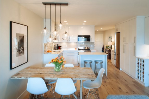 Office-comedor-mesa-rústica-sillas-modernas